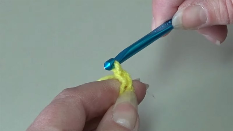 - Skip 1 ch, then work 1 sc (single crochet) into the next ch.