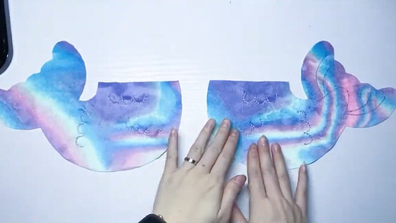 • Tail Scales: If using embroidery, secure the 7” x 10” hoop to add the intricate layered scales. Alternatively, follow the stitching guide to topstitch the design by hand or with a sewing machine.