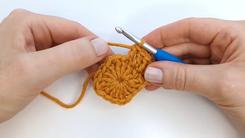 To continue making your granny square larger, you will simply repeat the instructions for Round 2.